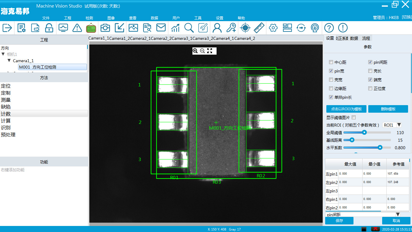 本系統采用四個相機,分為四個工位對半導體芯片進行檢測,分別是: