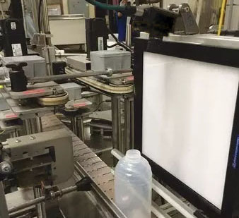 西安海克易邦光電使用尺寸為24英寸×24英寸的大光板(LLP)白色平板照明光源,為沿著生產(chǎn)線移動(dòng)的蜂蜜瓶提供背光照明。使用高像素工業(yè)相機(jī),捕獲瓶身上螺紋的圖像。