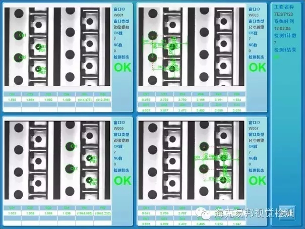 載帶缺陷檢測系統(tǒng),系統(tǒng)采用進(jìn)口工業(yè)相機快速獲取產(chǎn)品圖像,在一路相機下,實現(xiàn)兩路載帶各自定位、各自檢測。通過圖像識別、分析和計算,計算相應(yīng)位置尺寸,檢測到不良產(chǎn)品時按檢測時間命名保存不良圖像,并在顯示屏顯示當(dāng)前NG圖像,報警燈閃爍蜂鳴器輸出聲音信號。直到人工恢復(fù)報警,期間檢測不受影響。
